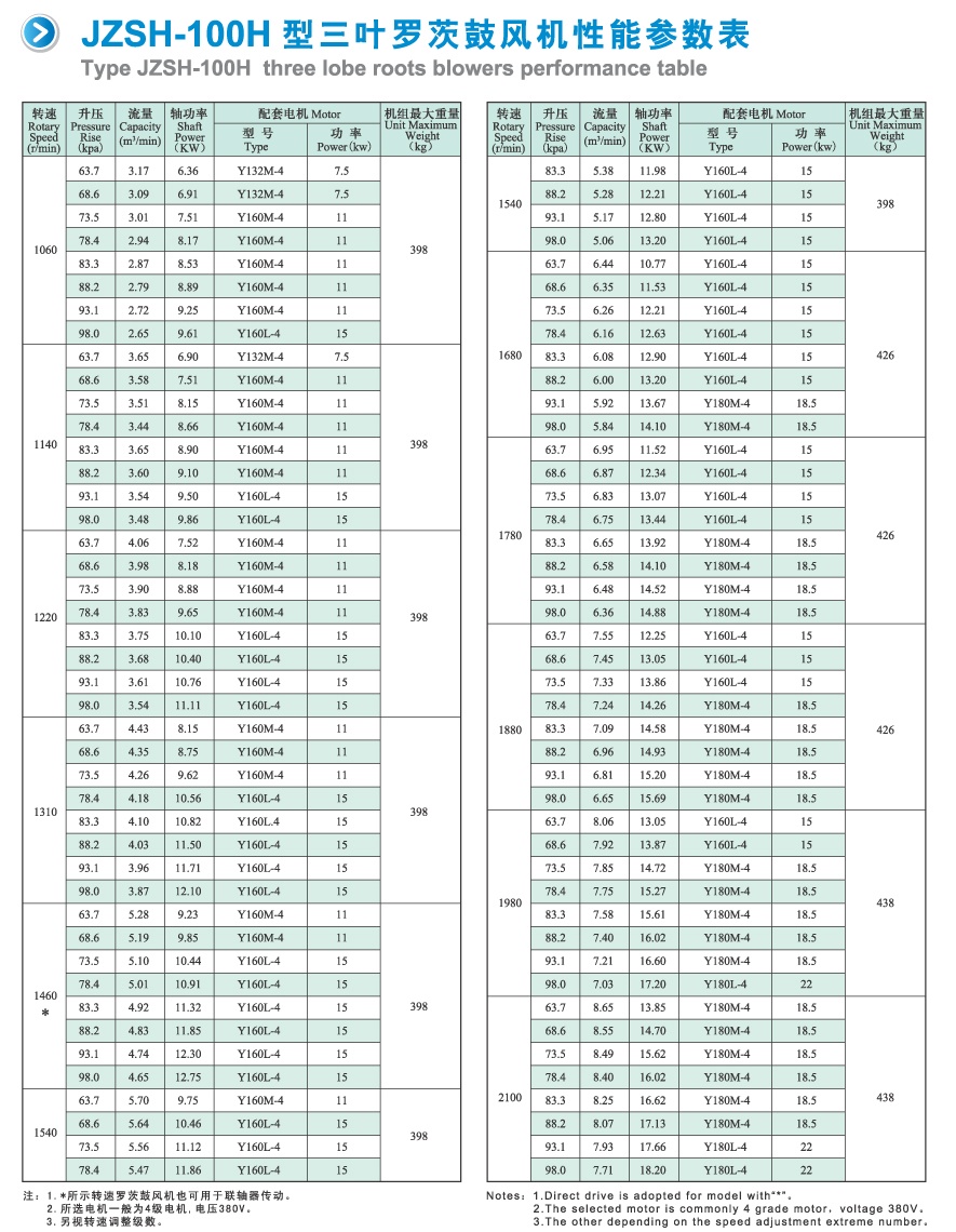 3、高壓羅茨鼓風機是容積形壓縮機,通過調整轉速來改變流量和軸功率。壓力表開關處于常閉狀態,如需測定壓力時可將壓力表開關打開。